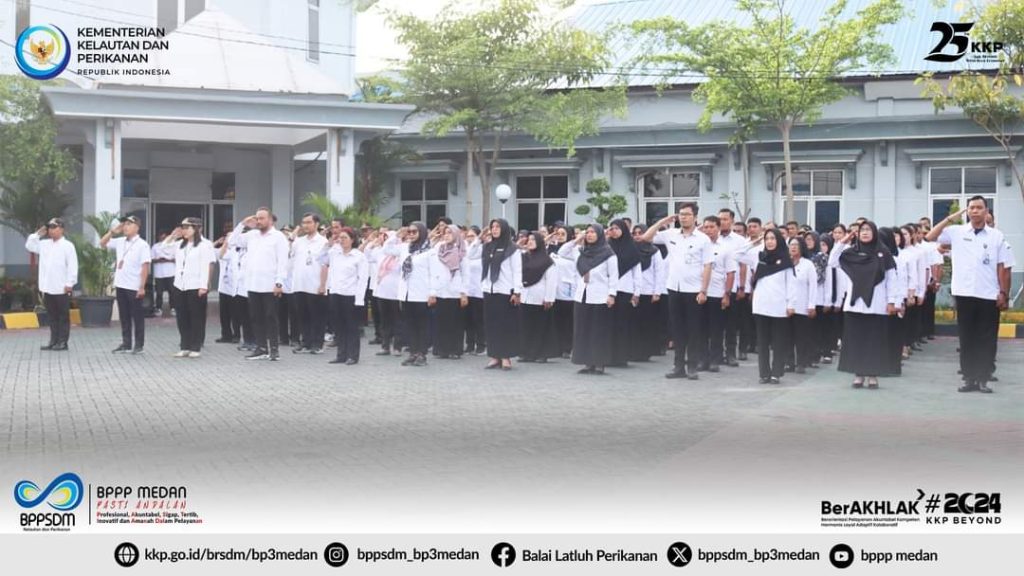 Sabtu, 1 Juni 2024 Keluarga Besar Balai Pelatihan dan Penyuluhan Perikanan (BPPP) Medan mengikuti Upacara Bendera dalam rangka Hari Lahir Pancasila bertempat di halaman utama Pelabuhan Perikanan Samudera (PPS) Belawan bersama seluruh Keluarga Besar UPT KKP di Kota Medan (PPS Belawan, Stasiun PSDMKP Belawan, dan Stasiun BPPMHKP Belawan).